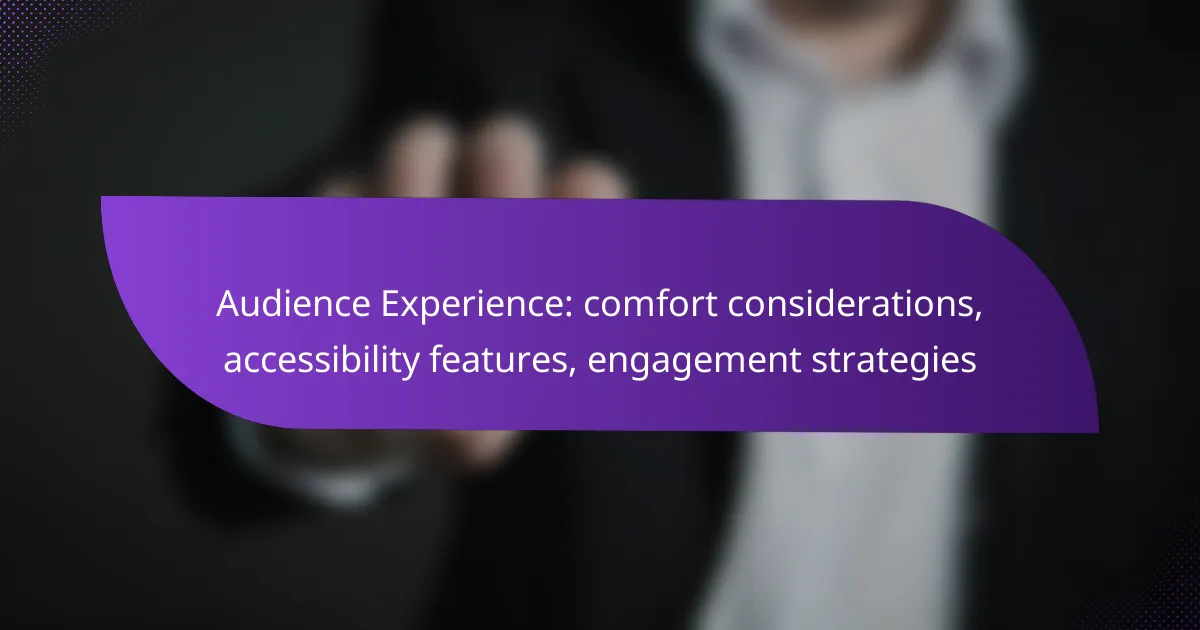 Enhancing audience experience involves a careful consideration of comfort, accessibility, and engagement strategies. By prioritizing ergonomic seating and climate control, venues can create a welcoming environment that promotes relaxation and participation. Additionally, implementing essential accessibility features ensures that all attendees can fully engage with the event, while innovative engagement strategies foster deeper connections and encourage repeat attendance.