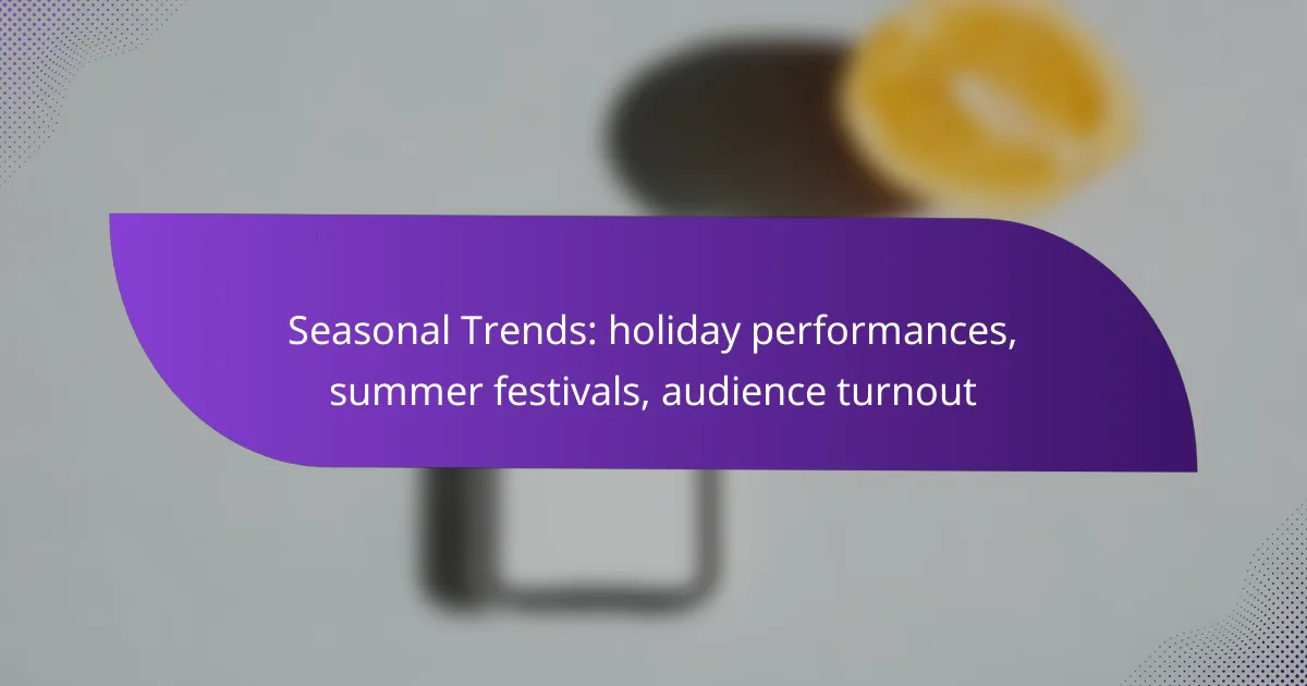 Seasonal trends in audience turnout reveal significant spikes during holiday performances and summer festivals, particularly in the UK. Festive events attract larger crowds as people seek entertainment that aligns with cultural traditions, while renowned festivals like Glastonbury and the Edinburgh Festival Fringe offer diverse experiences that further enhance audience engagement. Analyzing past attendance data can provide valuable insights into these patterns and help predict future turnout.